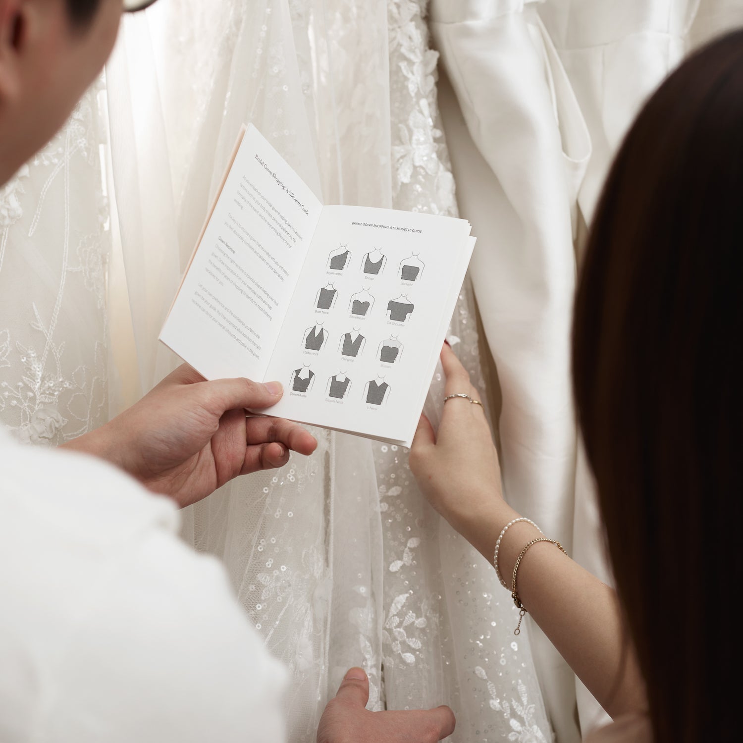 - Includes 2 booklets, “The Bride & Groom’s Silhouette Guide” by The Ivory and “Wedding Jewellery Guide by Carrie K.