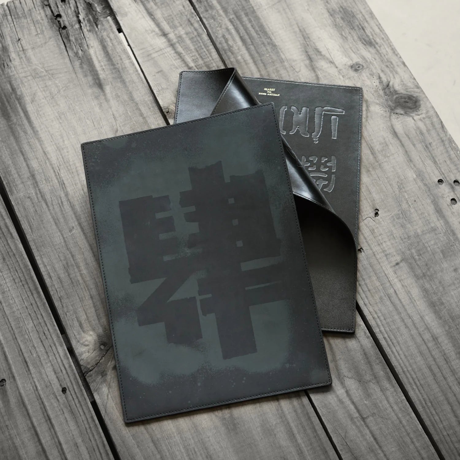 Designed in black and constructed primarily with leather, “Sign Of Our Times” is based on objects that contain or hold important belongings – wallets, document holders and the pockets of garments.