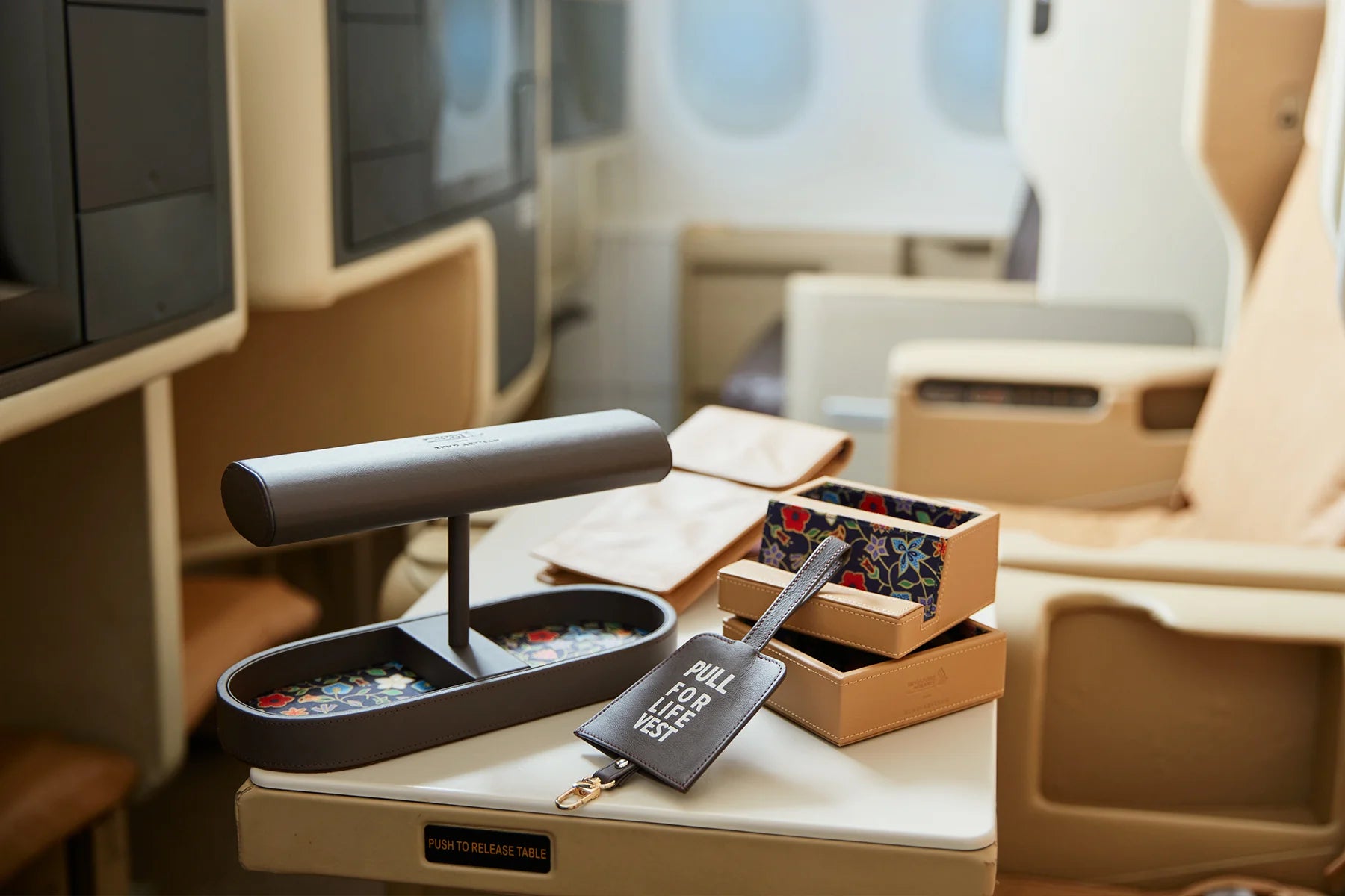 The collection, consisting of the Key Holder with Strap WristletCrossbody Pouch SlingWatch & Valet Tray Stand, and the Phone & Name Card Stand, is part of Singapore Airlines’ “The Upcycling Project” — an initiative that aims to give new purpose to retired commercial aircraft and in-flight service items.
